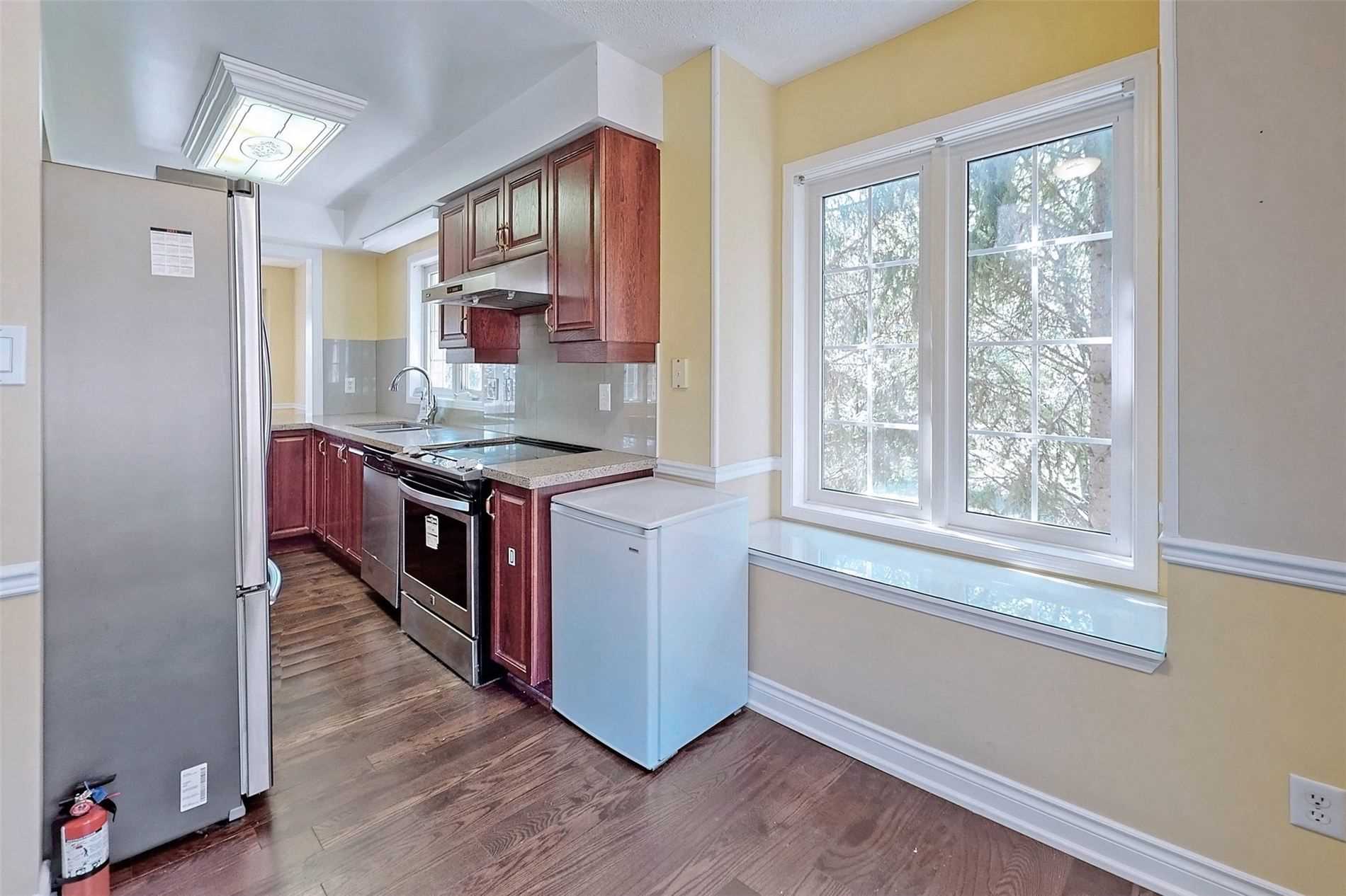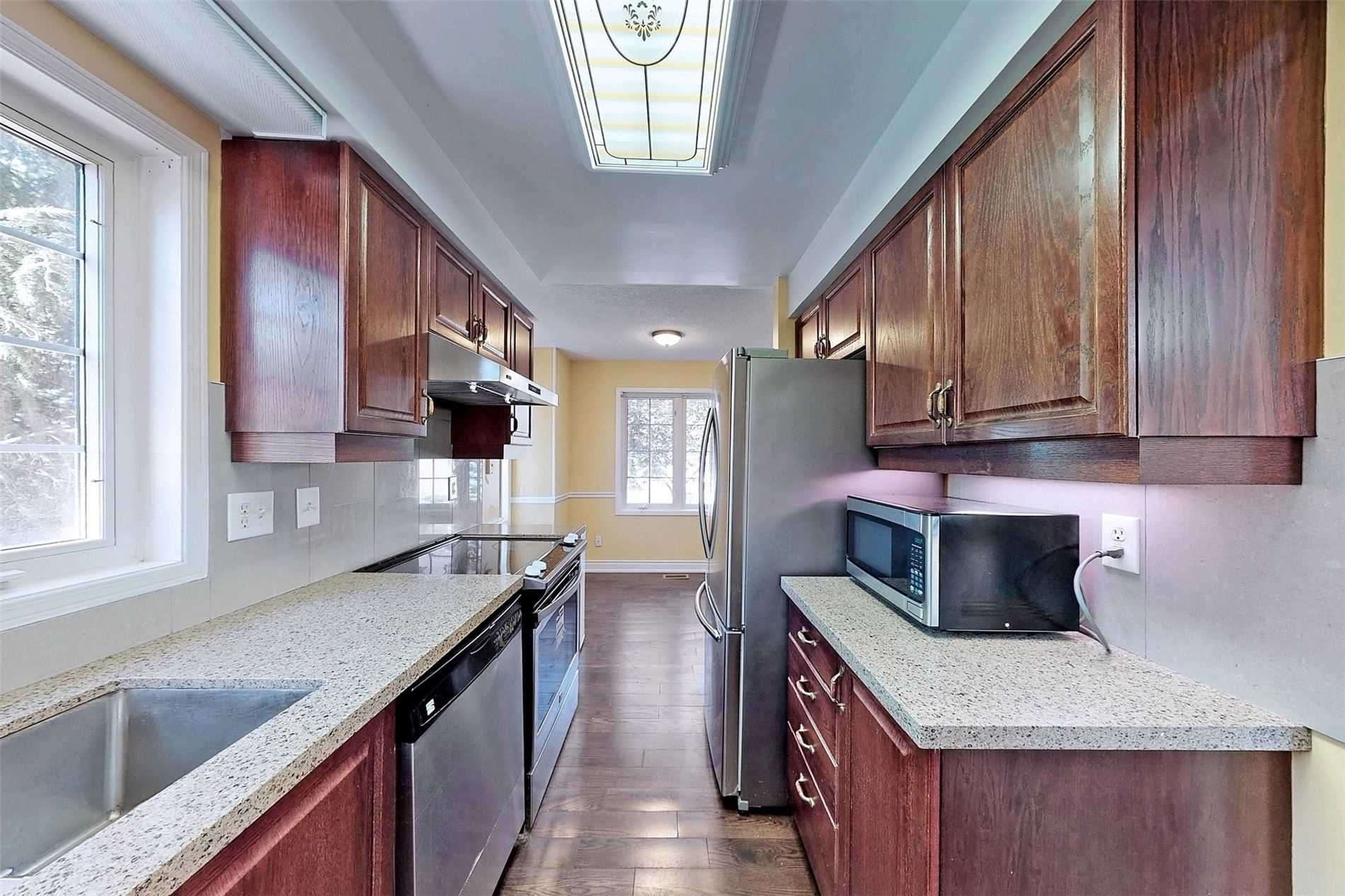 This Gorgeous End Unit Town House W/3 Spacious Bdrs, Renovated Kitchen With Granite Counter Top, Brand New Counter Top In 3 Baths. Upgraded Hardwood Flooring On Main, 2nd Floor And Stairs. 4th Br W/Full Size Bath In Bsmt. Walk To Parks, Go Station, Longos, Cafes, Dining, Fab Shopping & 3 Min Drive To Hwy 404. Stainless Steel: Fridge, Stove, Range Hood, B/I Dishwasher. Washer, Dryer. Wine Fridge. One Fridge In Bsmt. Water Softner, Air Purifier. All Electric Light Fixtures. Hot Water Tank(Rental).