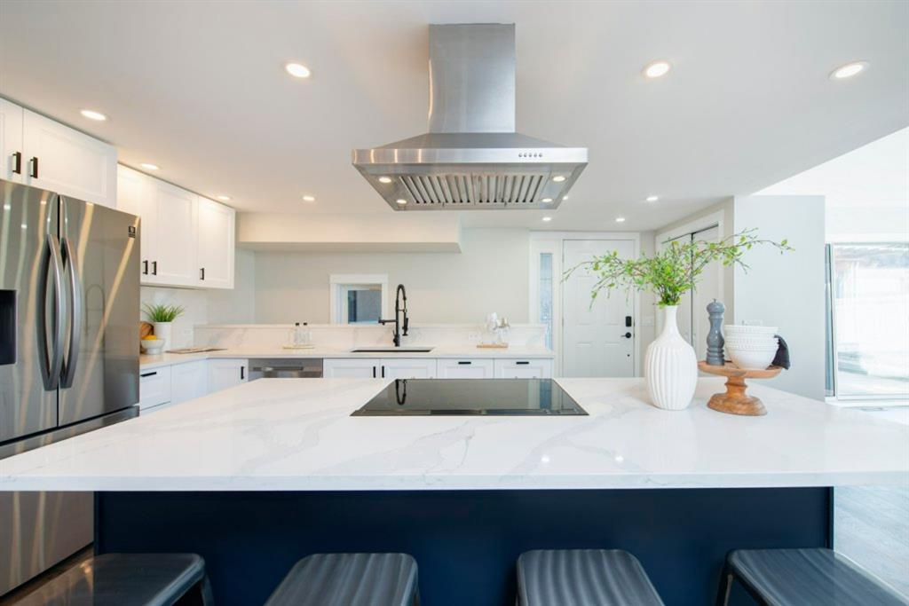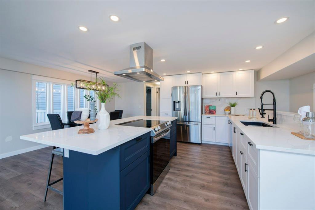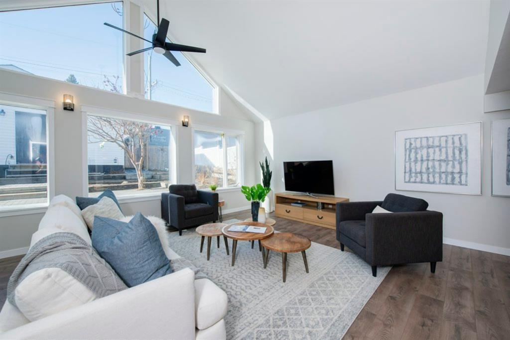 OPEN HOUSE FRIDAY 12 NOV 3:30-5:30 PM, JUST REDUCED . Stunning Renovation and huge Flexibility of use in the beautifully updated detached home in Tuxedo Park situated on a quiet tree lined Avenue with quick access to Centre Street, transit and shopping. Rebuilt from the old foundation up in 2004 this home has undergone a complete transformation in recent months to offer new kitchen with new stainless steel appliances, pot lights and quartz counters , new lighting throughout, new high end laminate flooring on the main and carpet to stairs and basement, updated bathrooms, new interior doors and completely painted to create a modern and welcoming home you will love. Open plan main floor features vaulted ceilings and a wall of windows to bring the outside in and is perfect for entertaining and family living with eating island in the kitchen and dining area to fit the longest table when we can gather again. Also on the main could be master bedroom , den or wonderful office space with walk in storage and cozy fireplace. Upstairs two huge bedrooms and 2 further good sized bedrooms lend to the flexibility, does you family need 5 bedrooms or maybe a bonus room or even 2 offices, the choice is yours! Basement makes a great gym with sauna, tv room or den. Further updates include house roof 2021, garage rood 2019. HWT 2017, Oversized garage, RV Parking and low maintenance yard with large patio and planter or garden beds await your vision. Call today to view (id:22211)
