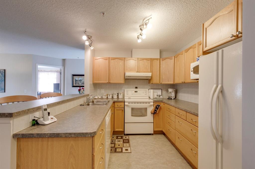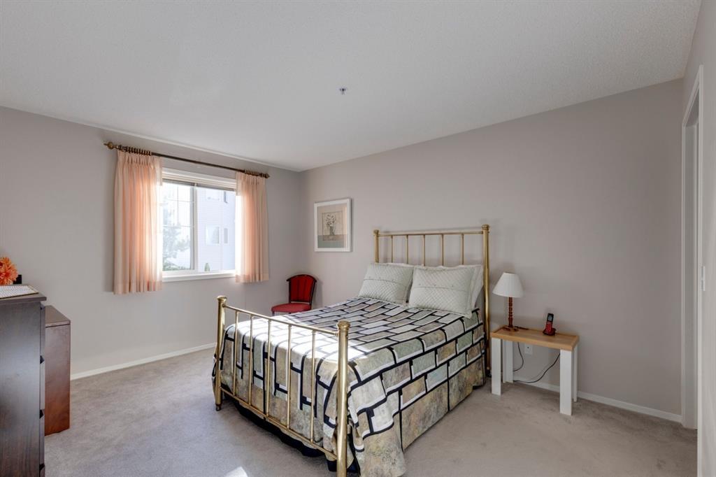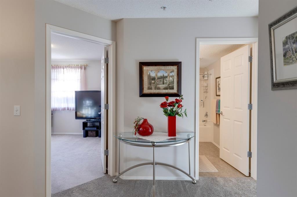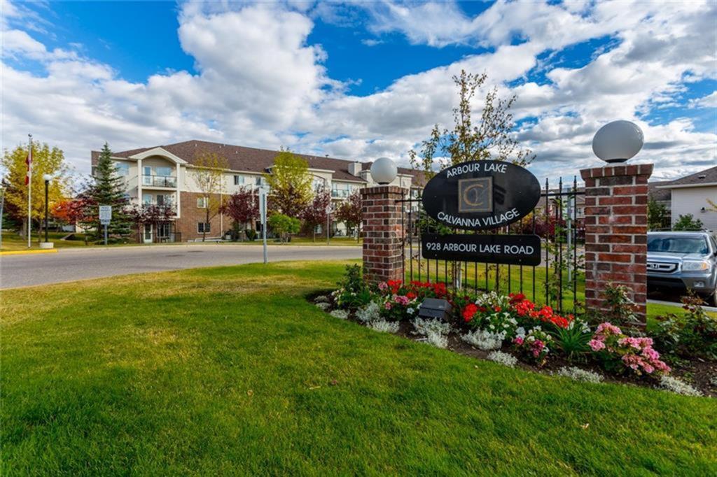 Maintenance-free living awaits you in this sought-after 55+ exclusive complex Calvanna Village, with LAKE ACCESS to Arbour Lake. This QUIET 2bed/2 bath interior CORNER unit is exceptionally clean & BRIGHT. Master bedroom has a downtown city view from bedroom window plus a walk thru closet to 3 pce bath with standup shower. Open concept living room/ dining area from kitchen with breakfast bar will accommodate many furniture layouts. It has been a non smoking non pet unit & includes a laundry/storage room, additional storage in parkade plus a HEATED INDOOR parking stall Floor plan is effectively designed to only have one 6 foot hallway with the balance of the condo all useable space. Monthly condo fees include heat (radiant in-floor), water/sewer, plus the residents' clubhouse which has: 2 guest suites, games/rec room with fireplace & fitness area, kitchen & party/banquet room. Walking distance to bus stops & less than a 3 min drive away from the library, LRT, the lake & Crowfoot Centre. PLEASE click thru the pictures where you can experience the condo, residents CLUBHOUSE & LAKE far better than our words can describe. Act quickly as this is the ONLY AVAILEABLE unit in the complex & POSSESSION IS FLEXIBLE. (id:22211)