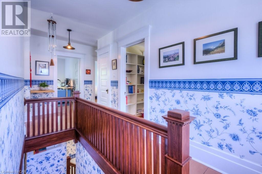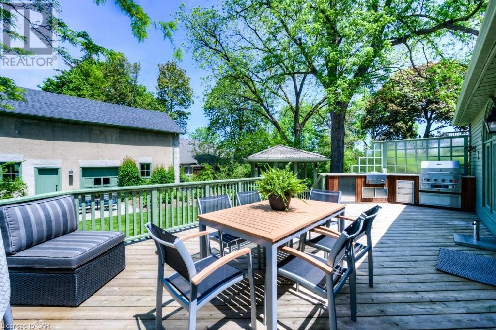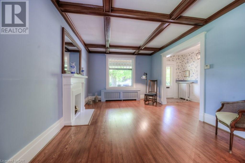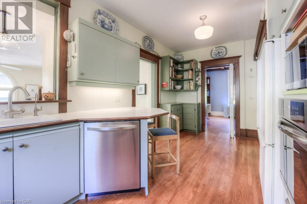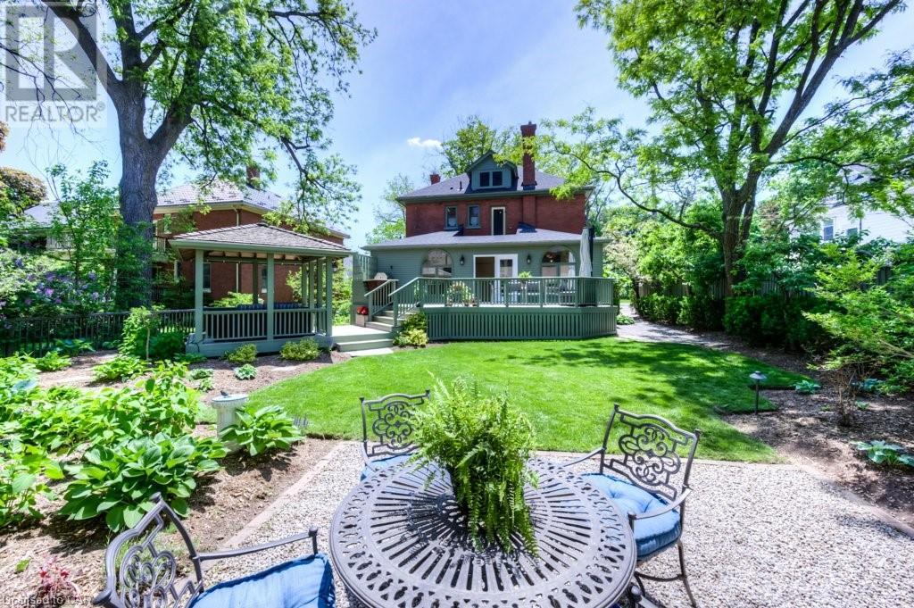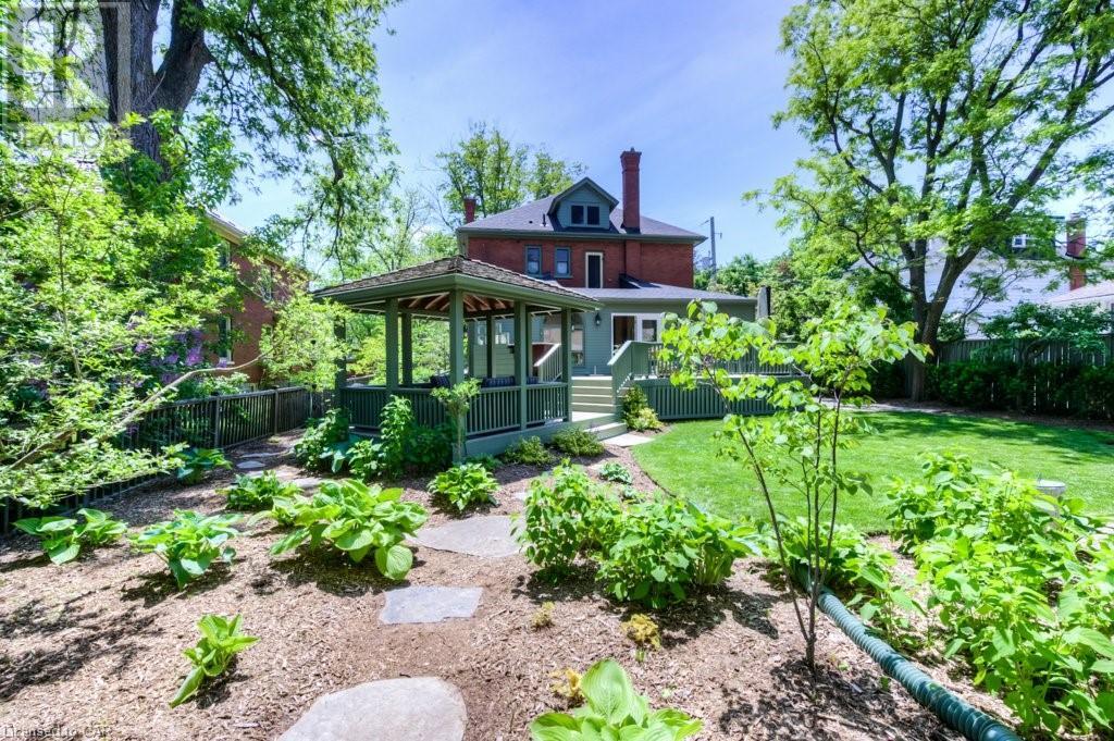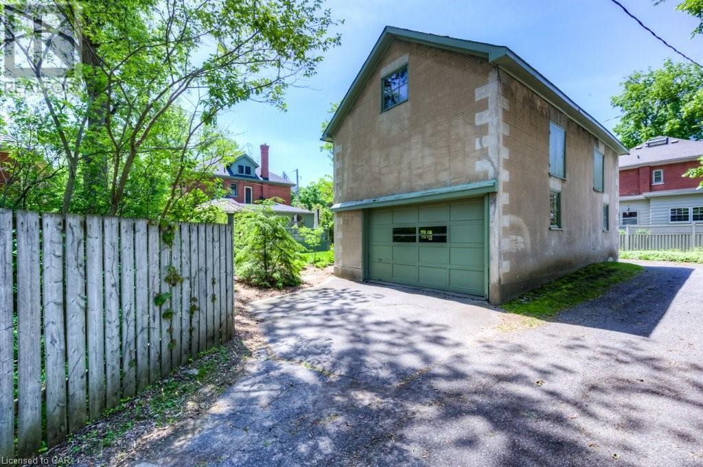WELCOME to 40 WENTWORTH AVE.! A 2.5 storey Edwardian Style red brick home (circa 1924) in old West Galt! The Four Square style is characterized by an asymmetric floor plan, attic dormer windows &a full front verandah with classical columns supports. This home boasts of high ceilings, wide baseboards, hardwood flooring and beautiful stained glass windows. The double living room offers large picture windows, oak flooring, fireplace and wooded coffered ceilings. The formal dining room has seating for 8,with ornate glass doors to the butler's pantry. The Galley kitchen features built in appliances, wall to wall cabinetry and counter space for the avid cook! The GREAT ROOM has Romanesque style windows, solid hardwood, gas fireplace, and a walkout to a tiered deck to the Summer kitchen featuring s/s Bbq, sink and fridge! Enjoy the private Gazebo overlooking the perennial gardens, stone patio and treed lot! Upstairs are 4+1 bedrooms with a fin. walk up attic,3 pc ensuite, skylights, and vaulted ceilings. Perfect for a bedroom or office! Lower level offers Family space including a wine cellar, potential in law suite with a separate entrance and 2 gas fireplaces. This area has just been freshly painted with newer carpet. The vintage Coach House at the rear features a workshop, loft and room for 2 cars. A spectacular home minutes from parks, schools, gas light district &downtown boutiques! You dont want tg miss this one! Roof 2019, dishwasher 2020, oven 2019, exterior painting 2021 (id:22211)