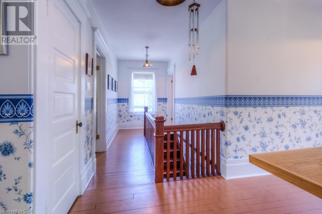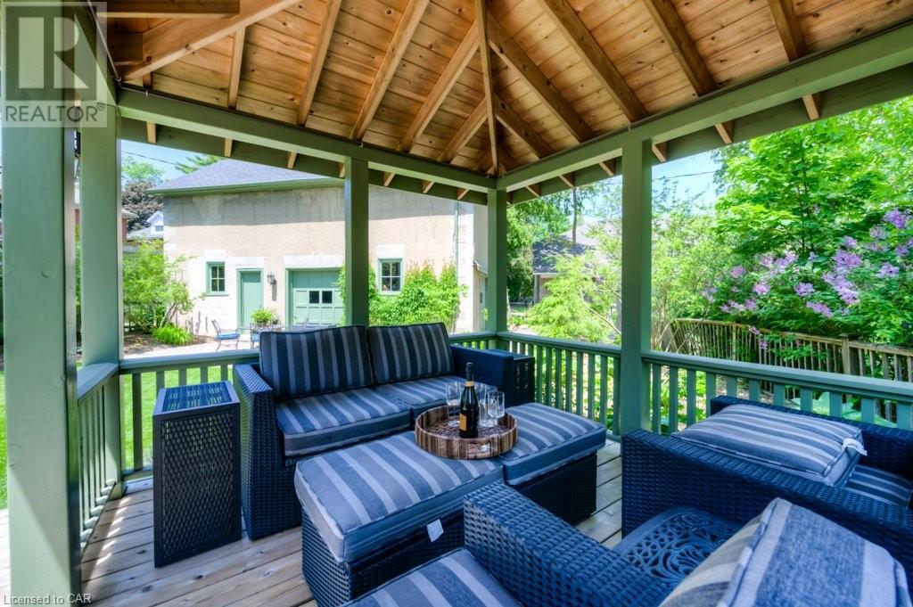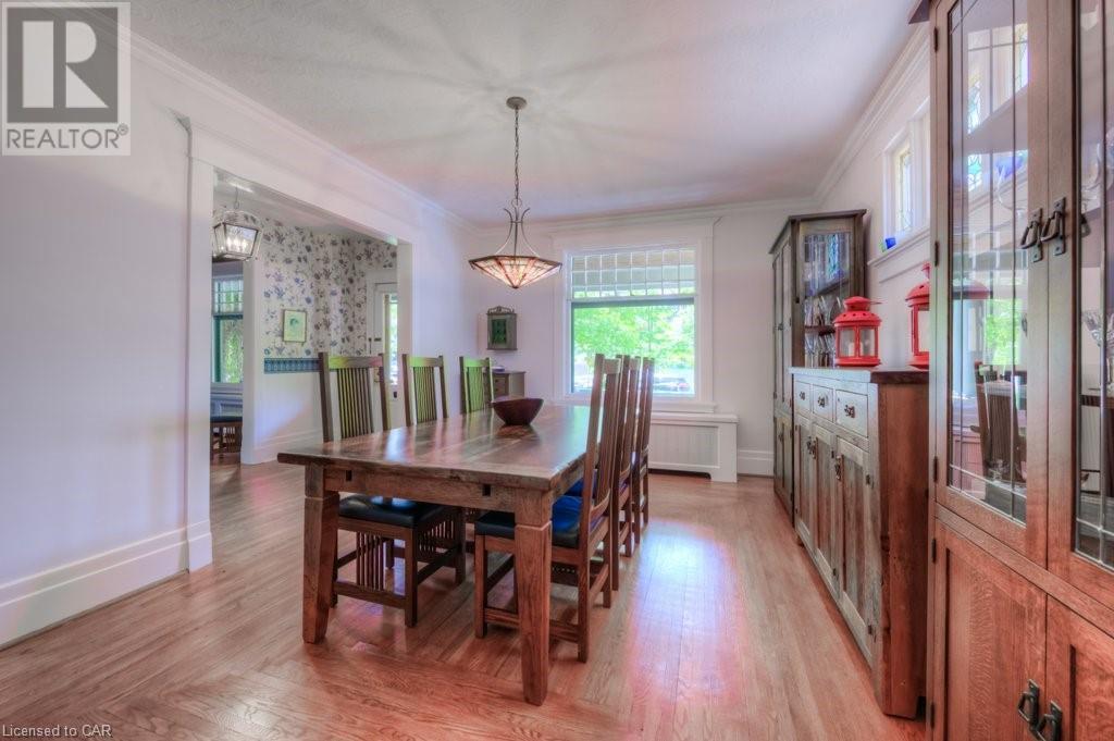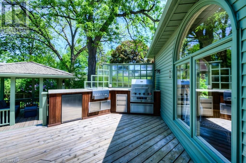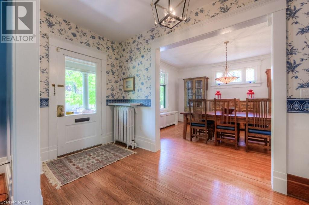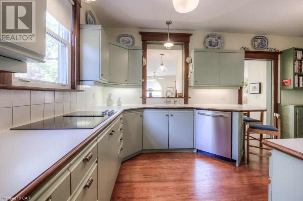 WELCOME to 40 WENTWORTH AVE.! A 2.5 storey Edwardian Style red brick home (circa 1924) in old West Galt! The Four Square style is characterized by an asymmetric floor plan, attic dormer windows &a full front verandah with classical columns supports. This home boasts of high ceilings, wide baseboards, hardwood flooring and beautiful stained glass windows. The double living room offers large picture windows, oak flooring, fireplace and wooded coffered ceilings. The formal dining room has seating for 8,with ornate glass doors to the butler's pantry. The Galley kitchen features built in appliances, wall to wall cabinetry and counter space for the avid cook! The GREAT ROOM has Romanesque style windows, solid hardwood, gas fireplace, and a walkout to a tiered deck to the Summer kitchen featuring s/s Bbq, sink and fridge! Enjoy the private Gazebo overlooking the perennial gardens, stone patio and treed lot! Upstairs are 4+1 bedrooms with a fin. walk up attic,3 pc ensuite, skylights, and vaulted ceilings. Perfect for a bedroom or office! Lower level offers Family space including a wine cellar, potential in law suite with a separate entrance and 2 gas fireplaces. This area has just been freshly painted with newer carpet. The vintage Coach House at the rear features a workshop, loft and room for 2 cars. A spectacular home minutes from parks, schools, gas light district &downtown boutiques! You dont want tg miss this one! Roof 2019, dishwasher 2020, oven 2019, exterior painting 2021 (id:22211)