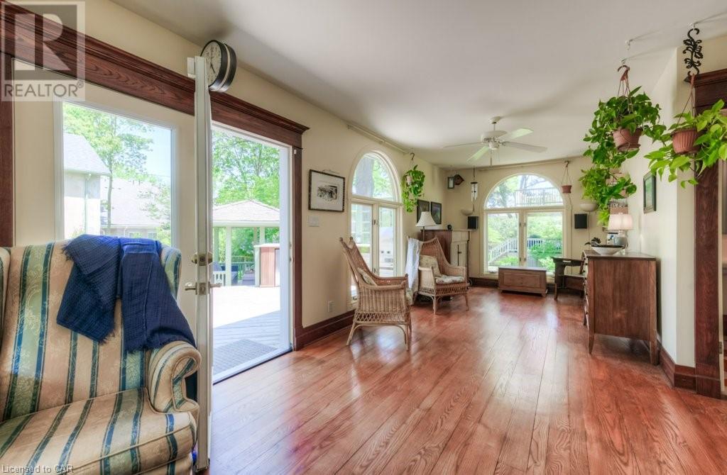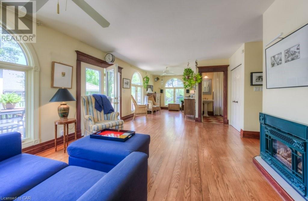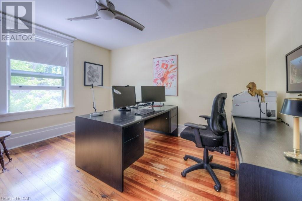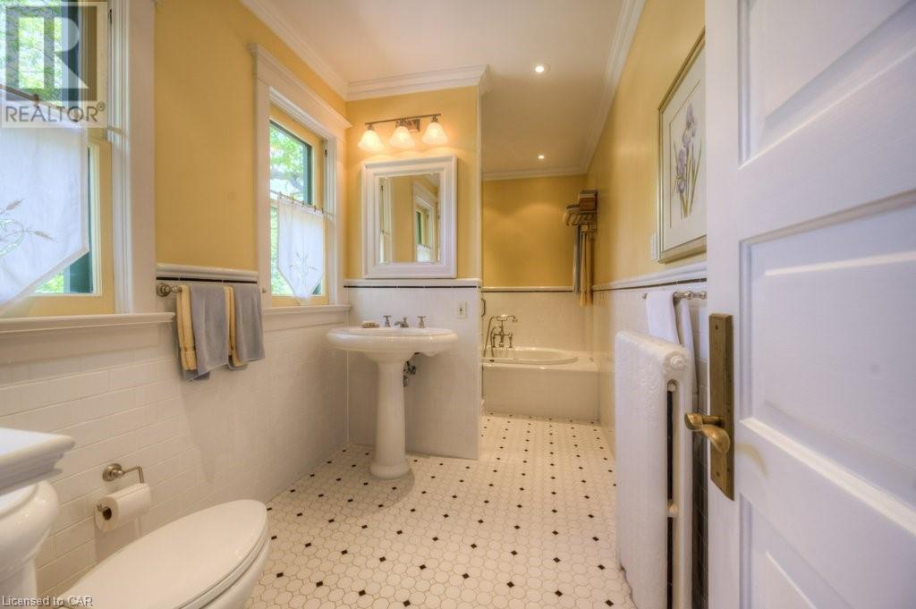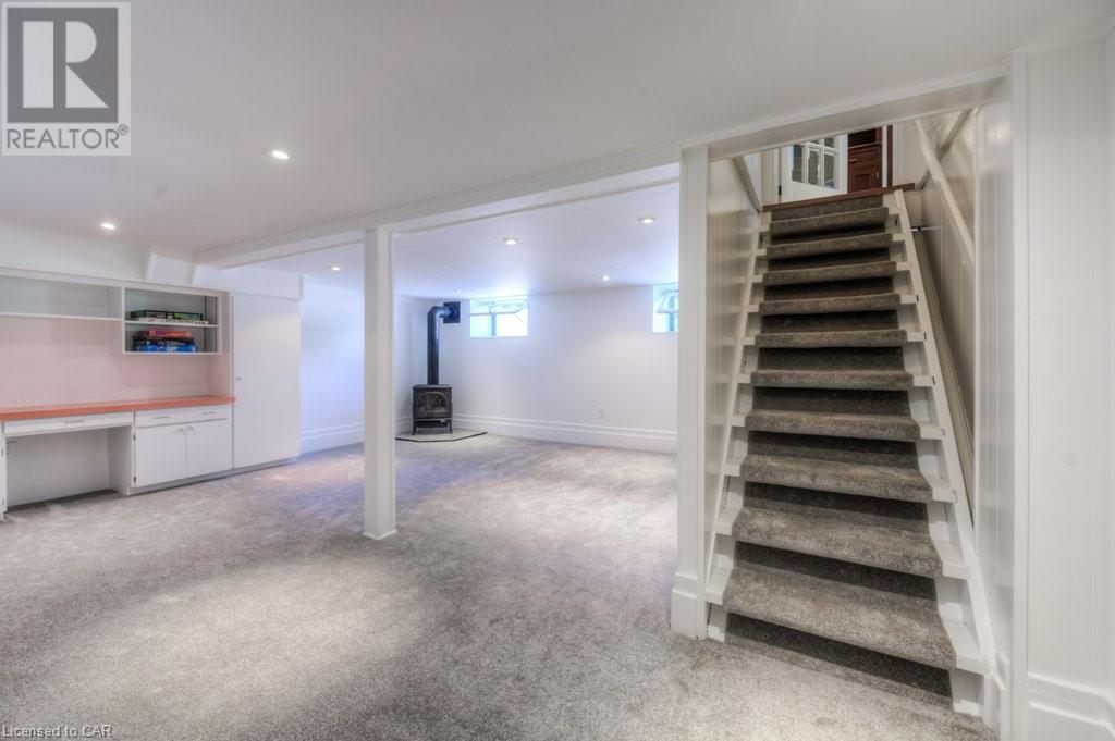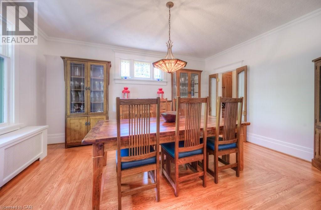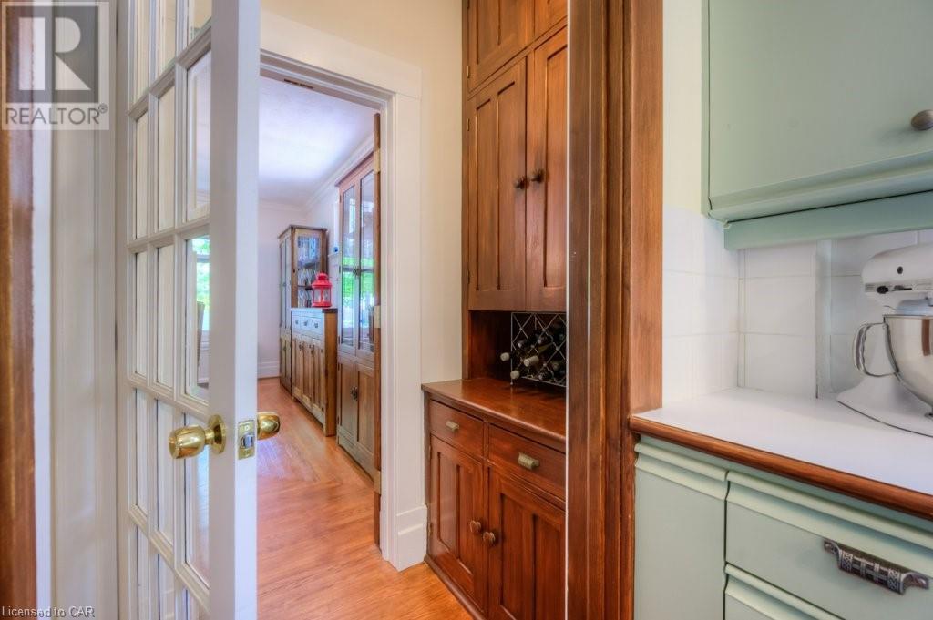 WELCOME to 40 WENTWORTH AVE.! A 2.5 storey Edwardian Style red brick home (circa 1924) in old West Galt! The Four Square style is characterized by an asymmetric floor plan, attic dormer windows &a full front verandah with classical columns supports. This home boasts of high ceilings, wide baseboards, hardwood flooring and beautiful stained glass windows. The double living room offers large picture windows, oak flooring, fireplace and wooded coffered ceilings. The formal dining room has seating for 8,with ornate glass doors to the butler's pantry. The Galley kitchen features built in appliances, wall to wall cabinetry and counter space for the avid cook! The GREAT ROOM has Romanesque style windows, solid hardwood, gas fireplace, and a walkout to a tiered deck to the Summer kitchen featuring s/s Bbq, sink and fridge! Enjoy the private Gazebo overlooking the perennial gardens, stone patio and treed lot! Upstairs are 4+1 bedrooms with a fin. walk up attic,3 pc ensuite, skylights, and vaulted ceilings. Perfect for a bedroom or office! Lower level offers Family space including a wine cellar, potential in law suite with a separate entrance and 2 gas fireplaces. This area has just been freshly painted with newer carpet. The vintage Coach House at the rear features a workshop, loft and room for 2 cars. A spectacular home minutes from parks, schools, gas light district &downtown boutiques! You dont want tg miss this one! Roof 2019, dishwasher 2020, oven 2019, exterior painting 2021 (id:22211)