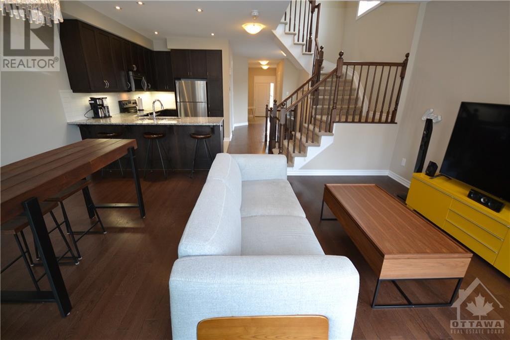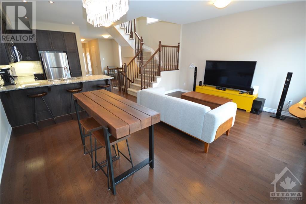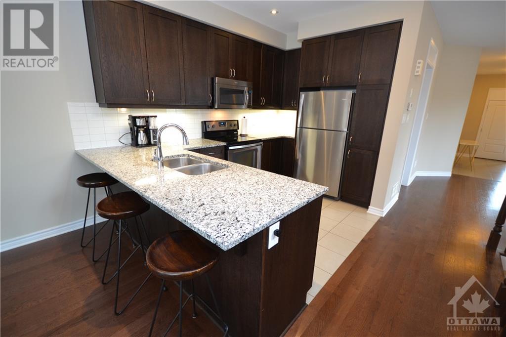 Ideally located approx. 1km from HWY 416 access ramps and walking distance to OCTranspo, Shopping, Entertainment & many businesses you will love this 2016 Tartan Corner Lot End Unit Town Home with 3Bedrooms, 3Baths +Finished Basement and Attached Garage. The Main level boasts a spacious tiled foyer, powder room, den, a mudroom with separate Garage access & closet, hardwood floors & 9ft ceilings. Entertain in your Open concept Living/Dining/Kitchen with Granite Counters, double undermount sink & SS appliances with access to backyard deck and a Fully PVC Fenced yard. Bedroom Level features an oversized Primary with 4pc En-Suite w/Separate shower & soaker tub + His&Hers Walk-ins, laundry, Full bath and 2 bedrooms. Basement features a rec room with Gas Fireplace and 2 corner windows, utility room with plenty of storage & rough-ins for a future bath. Please see YOUTUBE (Multimedia) Video. (id:22211)