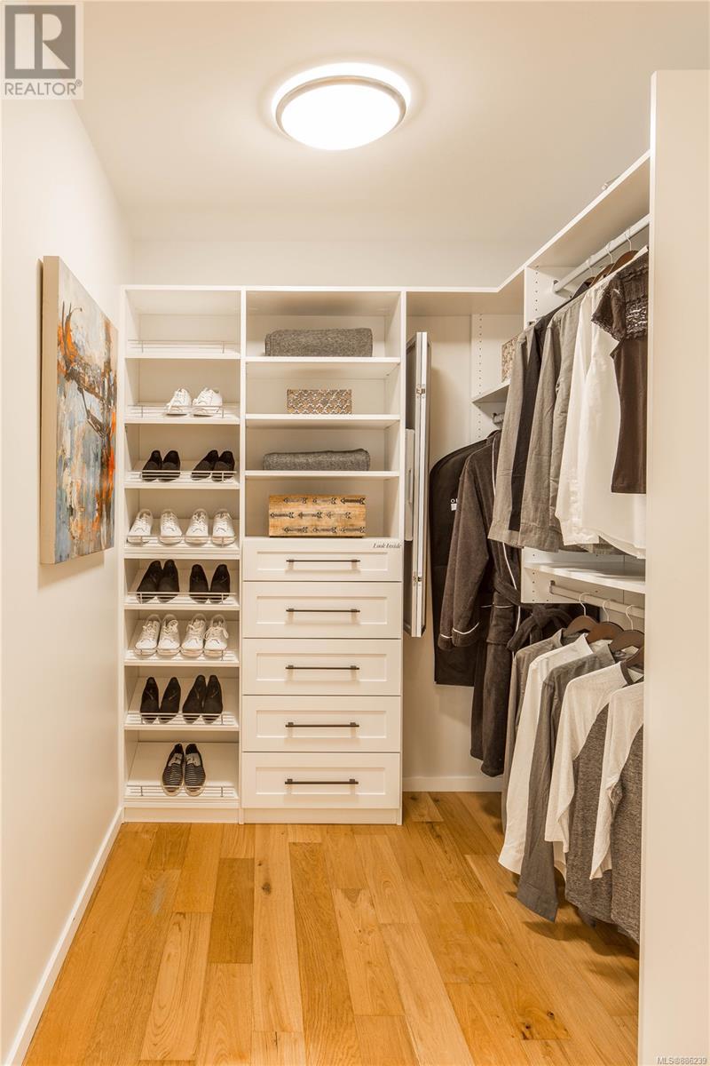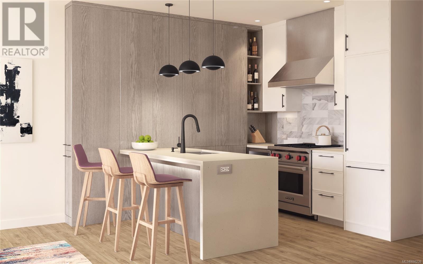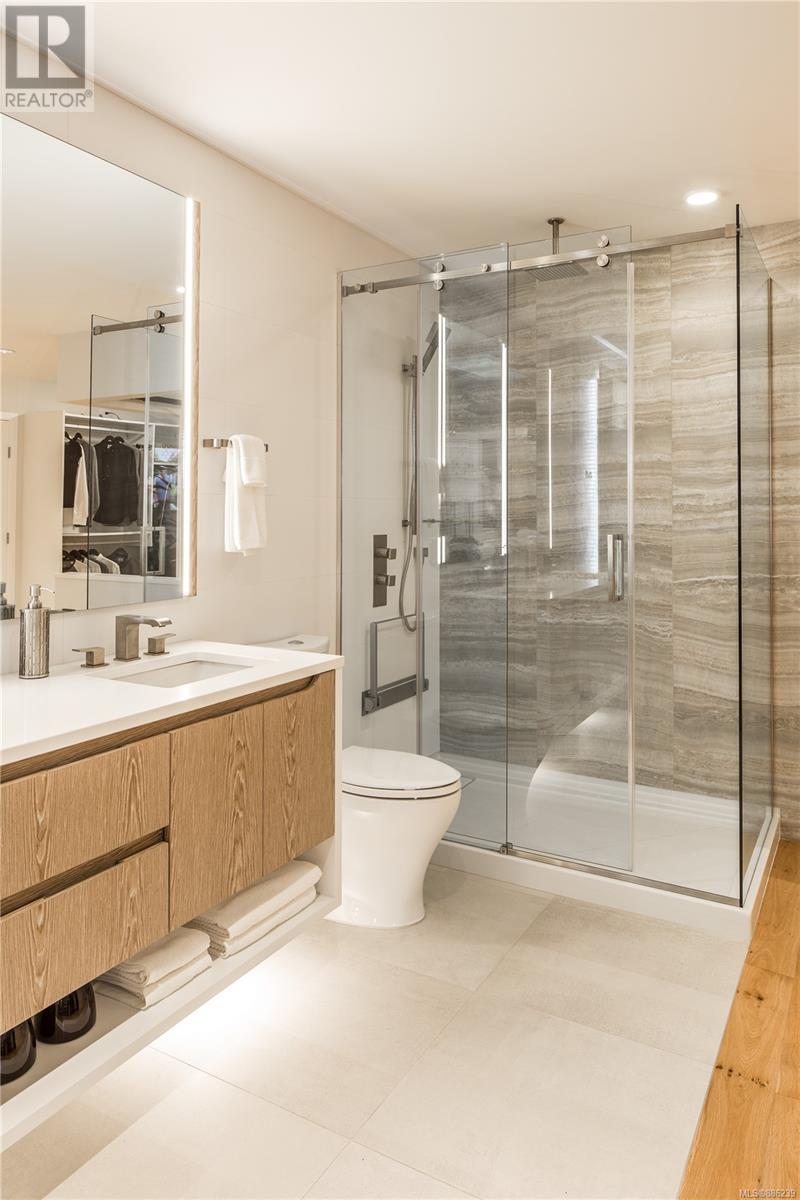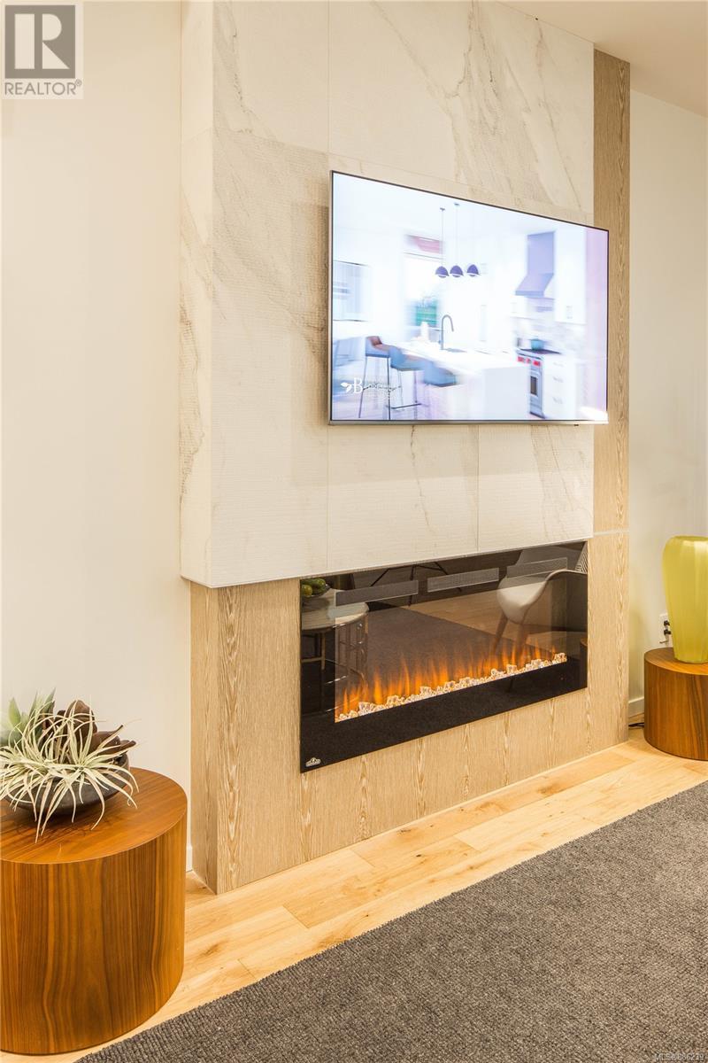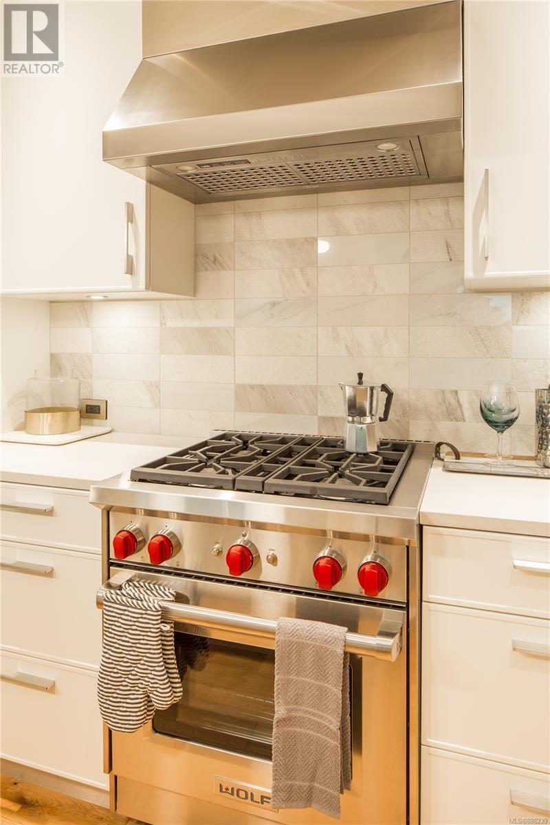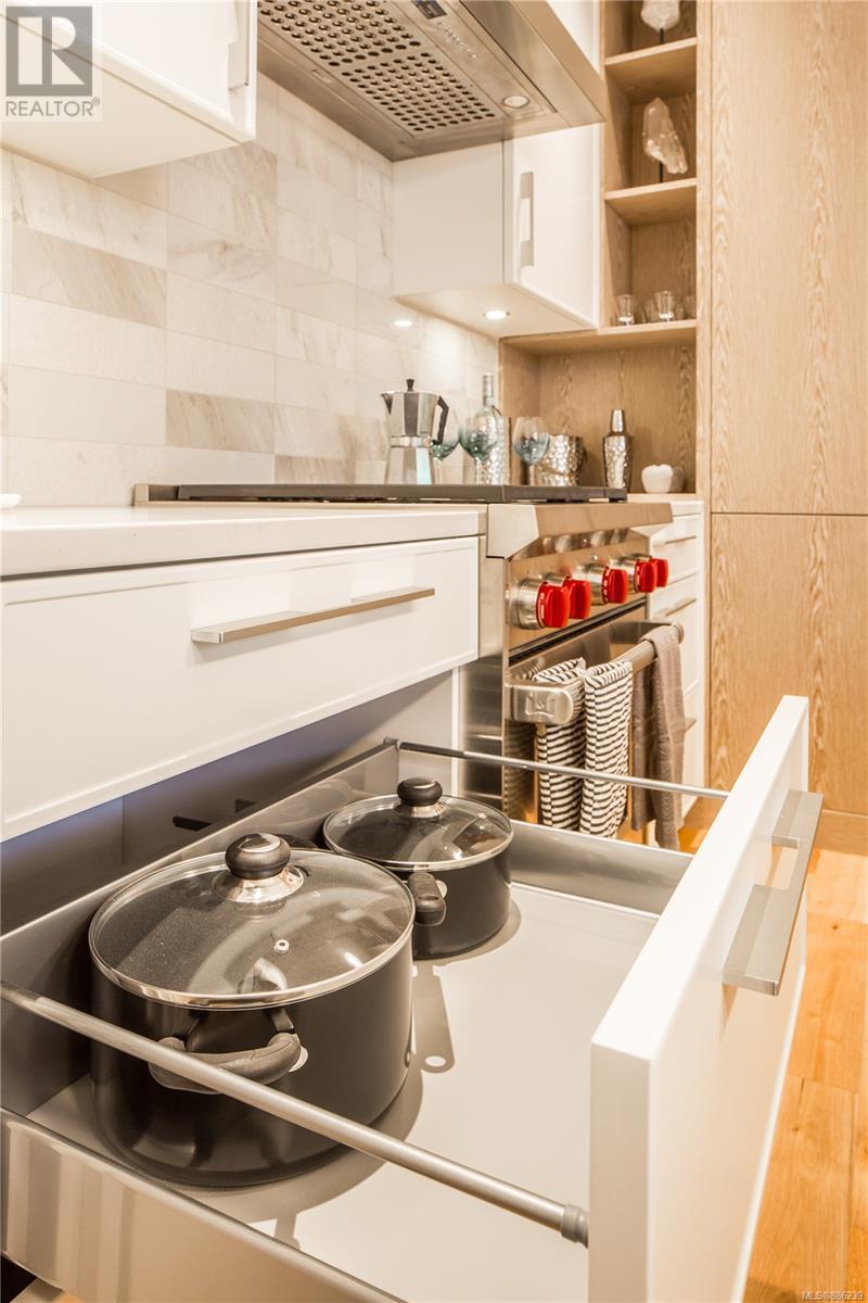 Be at home in nature at Bellewood Park by award-winning Abstract Developments. This rare collection of luxury homes come nestled in a park like setting amongst the Garry Oaks trees in the historic neighbourhood of Rockland. This sophisticated Jr 2 bed, 1 bath home offers 731 sq.ft. of bright open living space and over height 9 ceilings. Gourmet kitchen boasts a Premium appliance package, featuring deluxe Wolf Gas Range, Blomberg refrigerator & double-drawer Fisher-Paykel dishwasher. Hardwood floors throughout, central heating & air conditioning in this steel & concrete building. Master Bedroom features a large walk-in closet, second bedroom incl. millwork with a custom built desk & wall bed for guests. Enjoy your beautiful outdoor living space equipped with a built in outdoor heater, water & gas outlet. Includes underground parking space, storage, bicycle lock-up & access to concierge service. Steps to Upper Fort, minutes to downtown, Cook St Village & the Dallas Rd Waterfront. (id:22211)