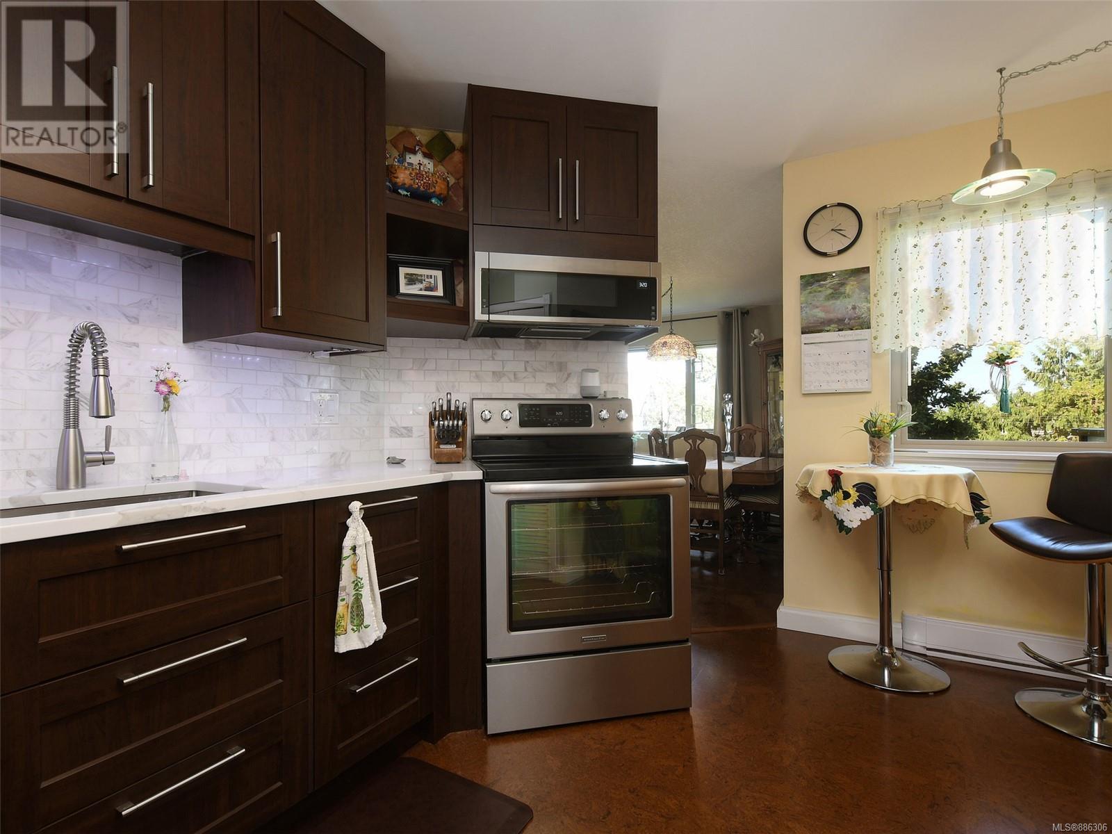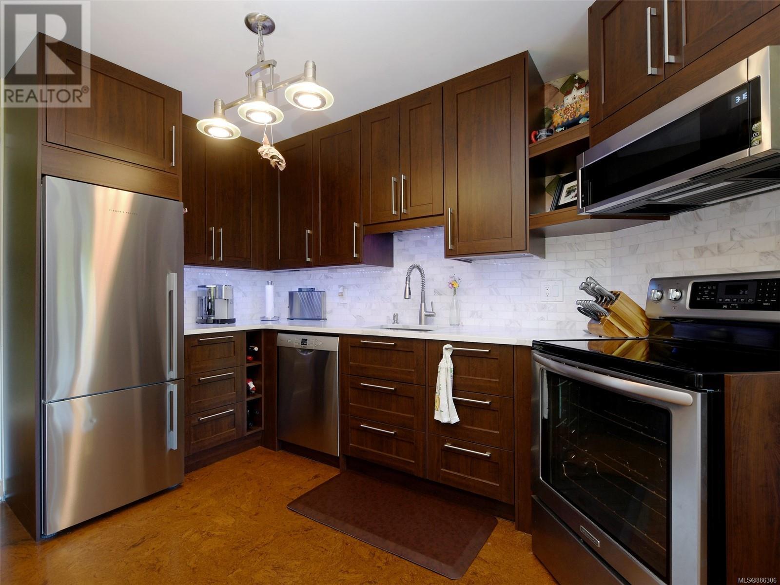 One of the largest 2 bedroom, 2 bathroom corner unit in the building, completely updated and with a professionally managed strata. Updated top to bottom including bathrooms, kitchen cupboards, counters and new high end stainless steel appliances, cork flooring and new paint throughout.  Comes complete with in-suite laundry, fireplace and secure underground parking! Enjoy meals in your eat in kitchen, your separate formal dining room or on your large west facing balcony! Large primary bedroom offers lots of closet space as well as an ensuite bathroom.  Includes separate secure parking and storage as well as a guest suite in the building and CCTV.  Some rentals allowed. Only a 10 minute walk to downtown and Oak Bay from this Rockland-Fairfield border location and just a short walk to all major buses.80 Walk Score and 90 Bike Score. (id:22211)