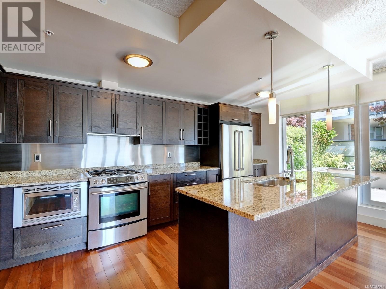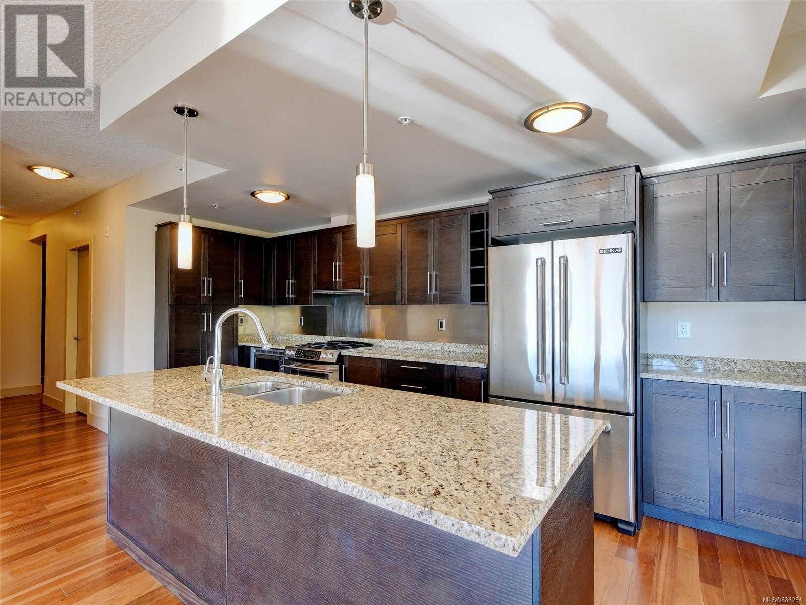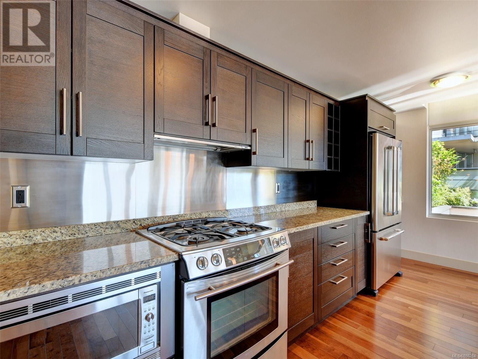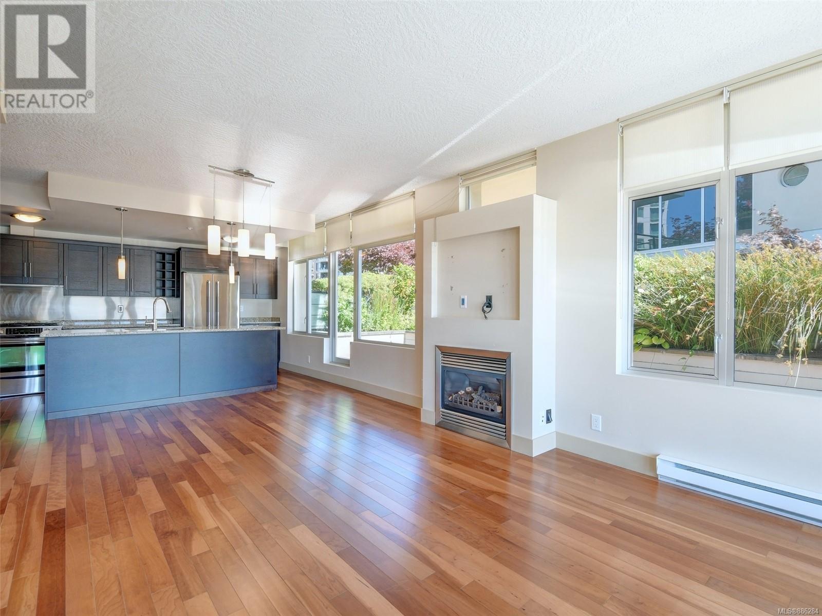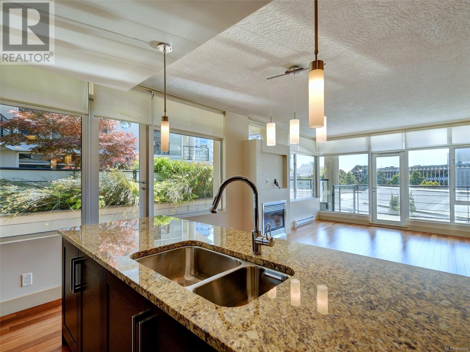 Wow this 2 bdrm S/W facing corner suite offers approx. 1140 sq. ft. of living space plus 2 balconies that total approx. 488 sq. ft. Welcome to the Aria - a first class complex located in the desirable Humboldt Valley, steps to Beacon Hill Park, the Empress Hotel, Victoria's historic Inner Harbour, the vibrant downtown core & air & sea transportation to Vancouver & Seattle. Features of this unit include large gourmet kitchen w/ granite counter tops, s/s appliances, eating bar & gas cook top; engineered hardwood floors, gas fireplace, floor to ceiling windows, in suite laundry & a contemporary urban ambiance. There is separate storage & secure underground parking. Everything you need for an urban lifestyle. This upscale residence offers a resident caretaker, Concierge, fitness centre, steam room, lounge and bicycle & work rooms. Location! Location! WITH A WALK SCORE OF 97 you are central to everything Victoria has to offer - A beautiful home in the heart of a beautiful City. (id:22211)