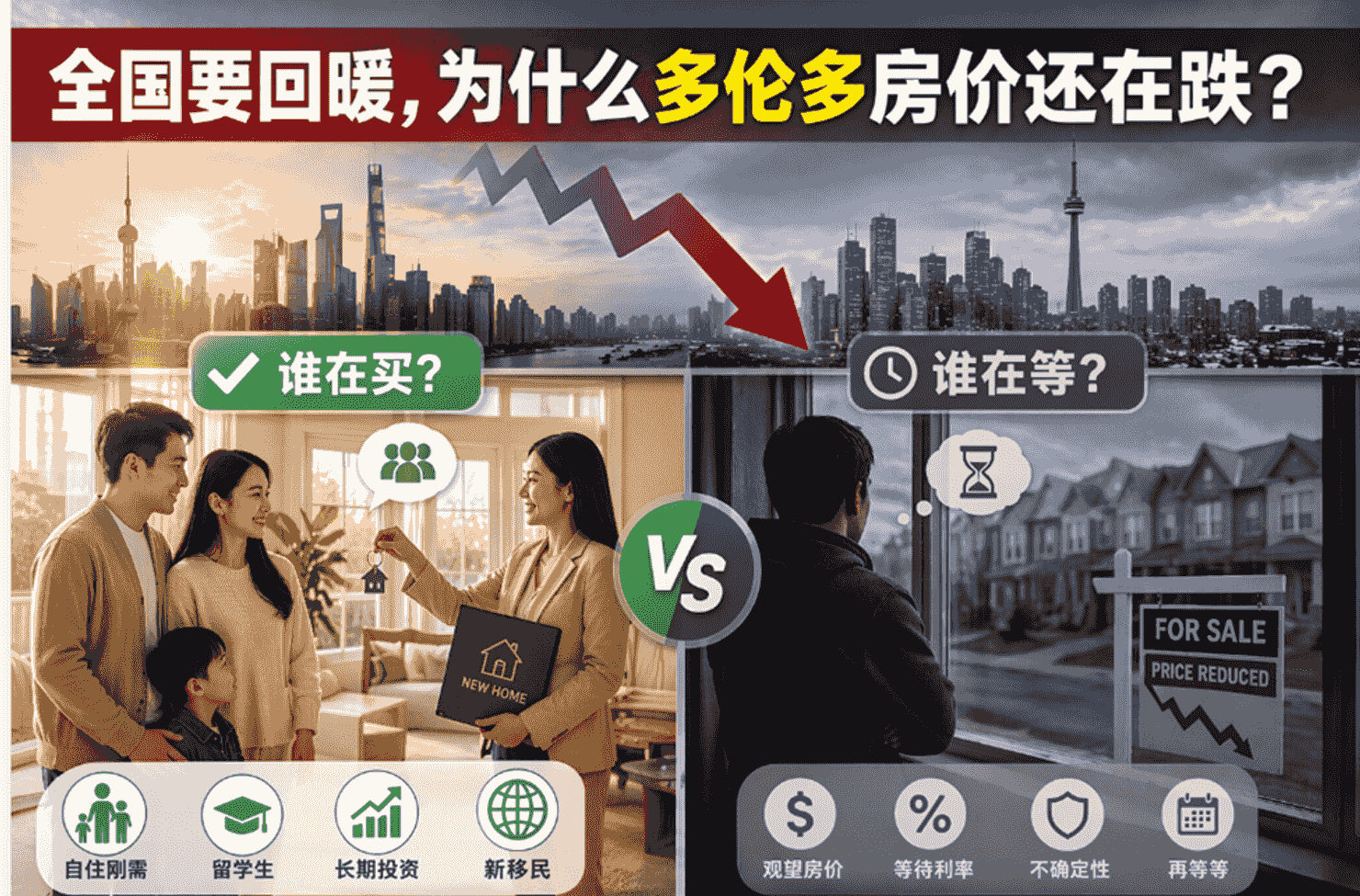 Royal LePage总裁兼CEO表示, sluggish market 还受到 nervous 首次购房者、“先卖后买”行为以及主要市场库存受限的影响。Royal LePage broker 指出,2025年底多伦多房屋销售同比略有增长,但价格增长“仍然 flat”。“高供应水平使市场条件保持平衡。” condo 领域活动略有增加,得益于首次购房者和 downsizers。但由于许多卖家决定 later time 重新挂牌而非接受更低的报价,库存呈下降趋势。这导致了“一定程度的僵局,买卖双方都在等待更有利的条件再行动”。