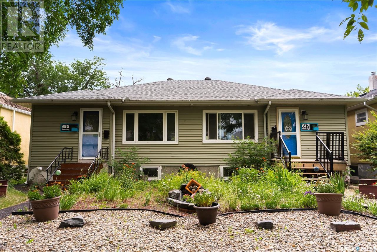 Welcome to 615-617 Broadway Avenue! This duplex is a fantastic opportunity for extended family living or as an income-producing property in an established neighbourhood. Centrally located and near a bus stop, this property is fully developed and has seen many updates over the years. Hardwood floors flow through the main floor of both units with ceramic tile in the kitchens. Both units provide 2 bedrooms on the main floor, a nice sized living room/dining room and a 4-pc bathroom. The basement of #615 has a nice-sized rec room, bedroom and a 3-pc bathroom on the basement. The basement of #617 has a good sized rec room, a bedroom, 2 additional rooms (dens) and a 2-pc bathroom. The property has seen a number of updates, including: basement windows replaced in both units, main drain replaced in #615, sewer lines and water lines replaced, backflow water valves installed in both units, front yard xeriscaped and perennial garden planted. Don't miss this excellent investment opportunity. (id:61201)