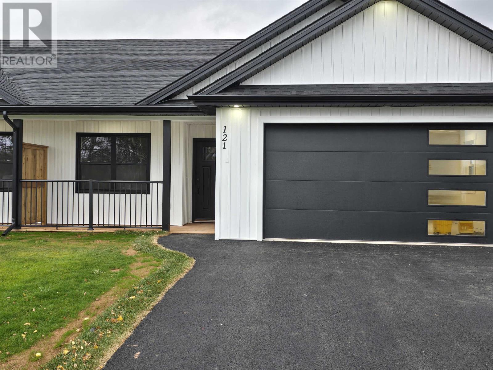 This brand new Semi detached home located at 121 Fairdale Drive in Charlottetown's fastest growing subdivision Montgomery Heights. New 1/2 duplex boasts great curb appeal with Contemporary black Atlantic windows, complimented with frost white vinyl siding & board and batten. It features 3 bedrooms & 2 full baths. Master bedroom with walk in closet and large ensuite bath with double sinks. Heat and cooling with an energy efficient 18000 BTU ductless heat pump & convection heaters, large 2 car heated garage, custom kitchen with a large island with under counter lighting. Quartz countertops throughout. Features luxury vinyl plank flooring and ceramic tile. High end finishes throughout from some of the Island's top trades people. Exquisite lighting throughout. Pressure treated decks with privacy, patio doors, front covered porch with aluminum railing. Energy efficient ICF party wall for added sound proofing, R24 insulation in walls and R50 in the attic, paved driveway and lot graded and seeded lawn. A great starter home for first time homeowner or those looking to downsize with maintenance free living. This location is close to all of Charlottetown's amenities and only a 5 minute drive to downtown. All measurements are approximate and should be verified by the purchaser. Listing is for right side of the duplex. HST rebate to be assigned back to the builder on closing. Owner is listing agent. Please note: Assessment & Taxes will be determined at closing. (id:61201)