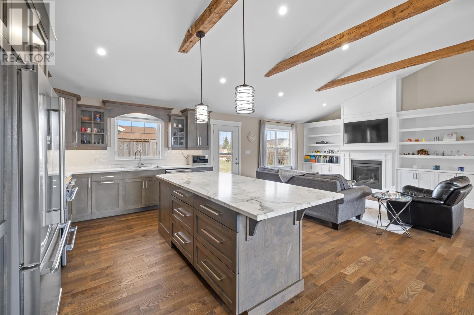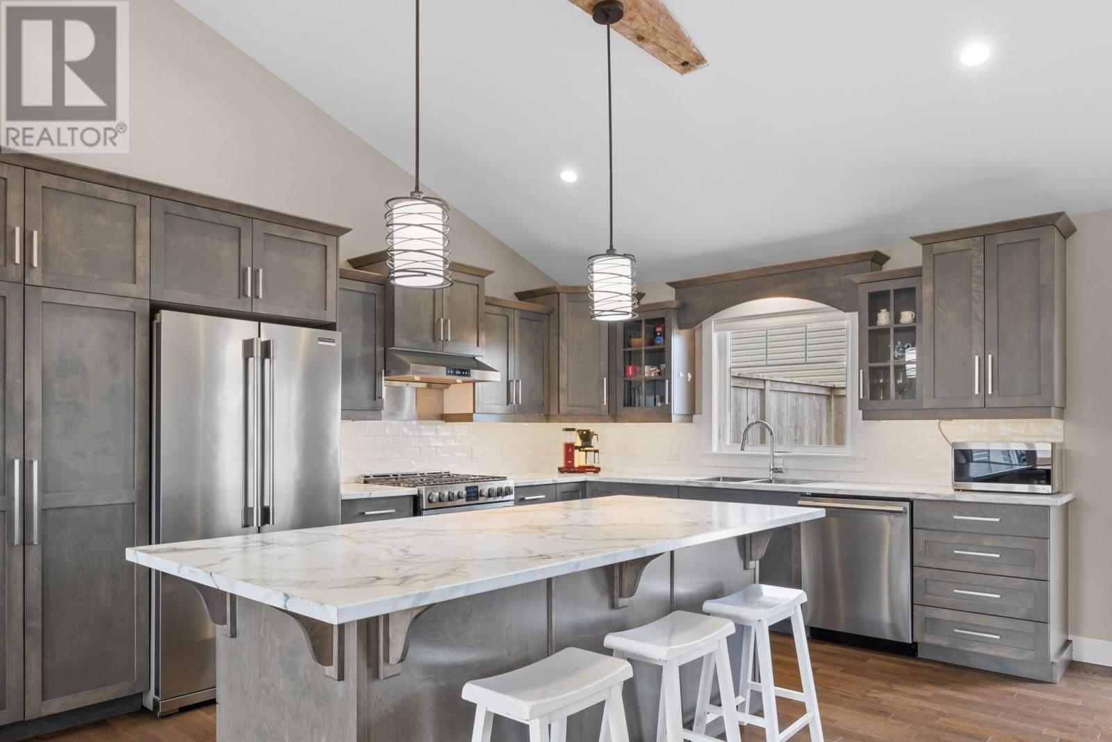 [VIDEO & VIRTUAL TOUR available - click virtual tour/multimedia link to view] This magnificent seven-year-old custom-built bungalow home is finished to absolute perfection! It boasts five bedrooms and three bathrooms in Cornwall's most desired neighborhood, Primrose Point. The living area is a whopping 3,200 square feet on a 0.3-Acre corner lot. As soon as you step into this exceptional family home, you'll be blown away by the custom design vaulted ceiling wood beams, which leads right into a bright, spacious open concept design main floor. The living room features a propane fireplace, providing warmth and ambience on those cold winter nights. The main floor features an open concept kitchen, living, and dining area with a patio door leading to the rear deck (23 x 12), overlooking your private, peaceful backyard. The kitchen has ample storage with a five-burner propane range, making it the ideal space for entertaining with a large dining area and a centered island. Just off the living room, down the hall, you'll find service door access to the double garage and the master bedroom with an ensuite with glass door shower. On the other side of the house, you'll find two generous-sized bedrooms and a full bathroom. The lower level features two more bedrooms, a large family/media space, a generous-sized office/den, a storage/utility room, and a full bath/laundry room. This fantastic home is located within minutes of the best golf courses, beaches, schools, transit and shopping centers. ALL MEASUREMENTS ARE APPROXIMATE AND SHOULD BE VERIFIED BY THE PURCHASER. CHECK OUT THE VIRTUAL TOUR OF THIS PROPERTY. (id:22211)