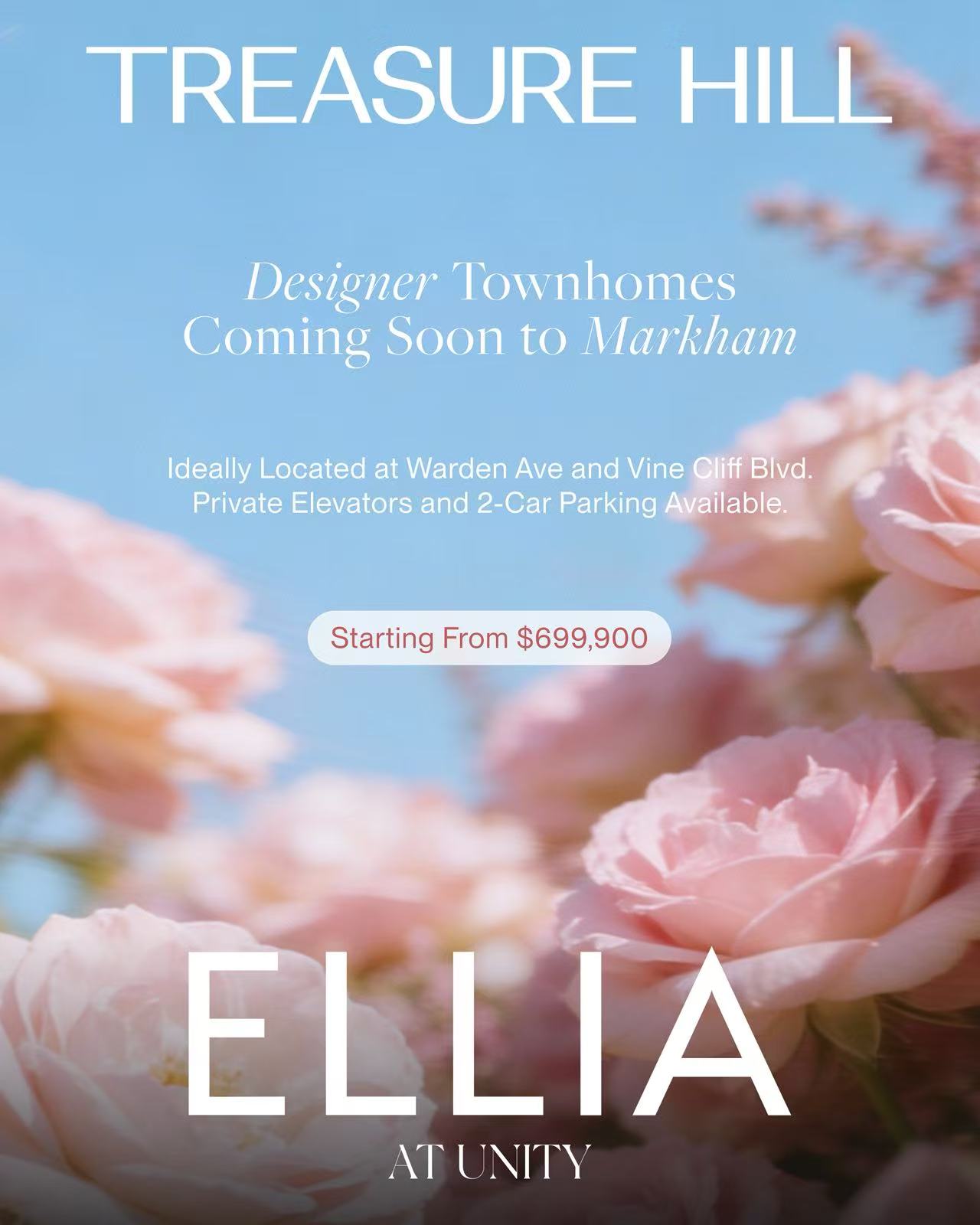 知名开发商 Treasure Hill 打造!万锦市区主打私家电梯联排与全屋地面以上设计,置业首选!价格范围
