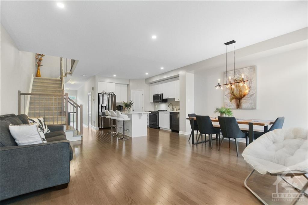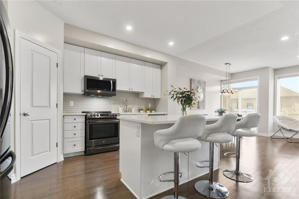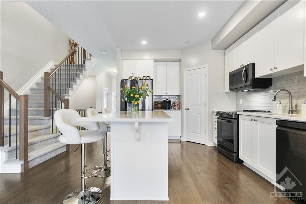 Welcome into this exquisite middle-unit townhome complete with a finished basement and feel right at home! As soon as you enter prepare to be captivated by the model-like presentation of this residence. The main level boasts flawless hardwood flooring, an elegantly upgraded chef's kitchen and open-concept living/dining area with expansive windows flooding the space with natural light. The 2nd level offers a spacious primary bedroom with a walk-in closet, an impressive ensuite featuring double vanity and 2 additional generously sized bedrooms accompanied by a full bath. The lower level adds to the allure featuring family room, rough-in for a future bathroom and ample storage space. Fully fenced backyard provides a plenty of space to relax outdoors. Step outside and take a leisurely walk around to appreciate the beauty of nature. Don't miss out on the opportunity to see this remarkable home!