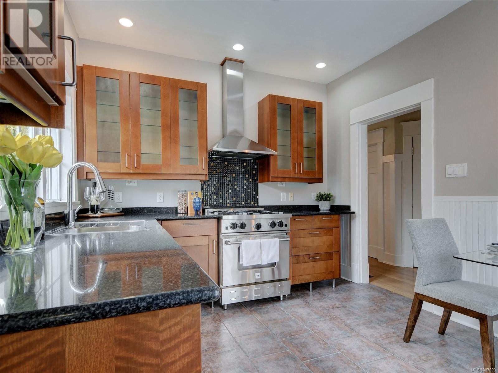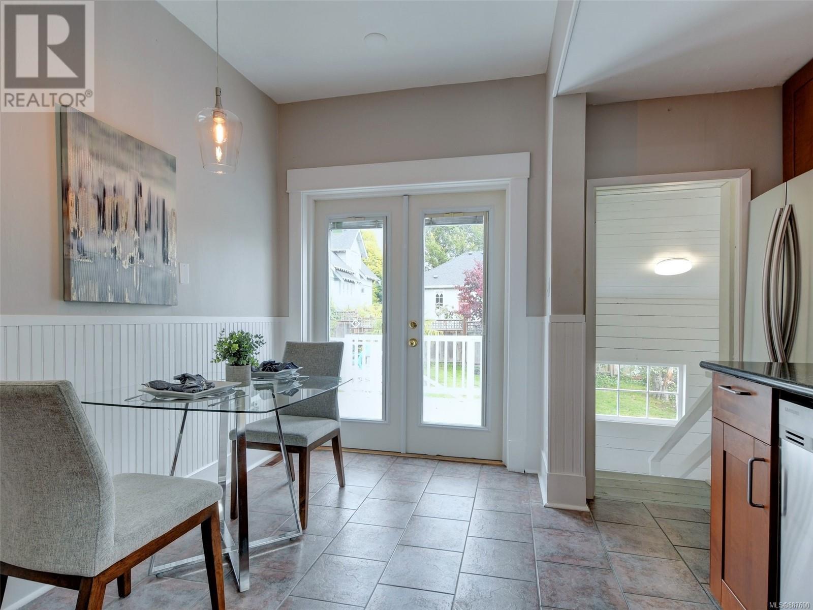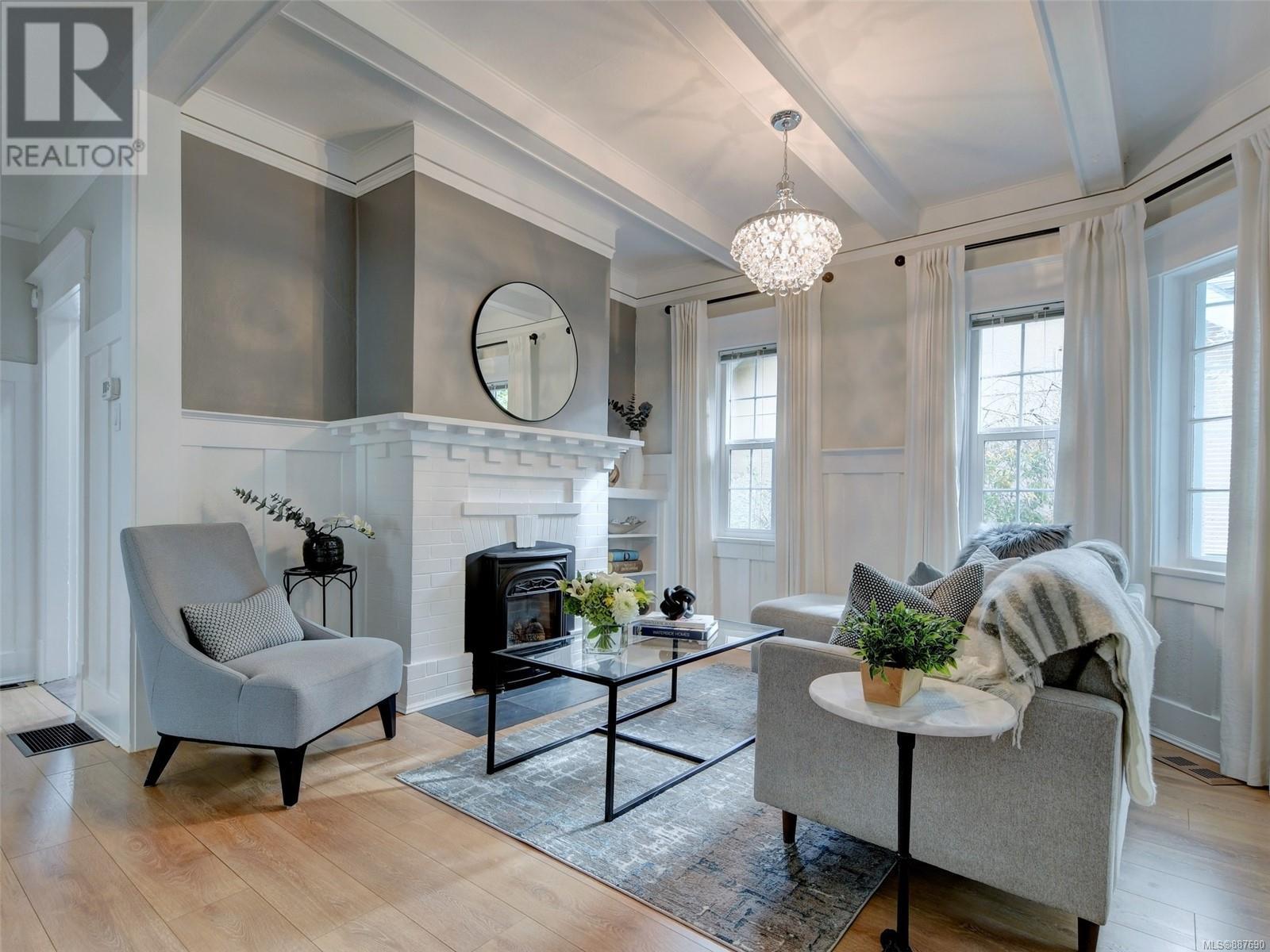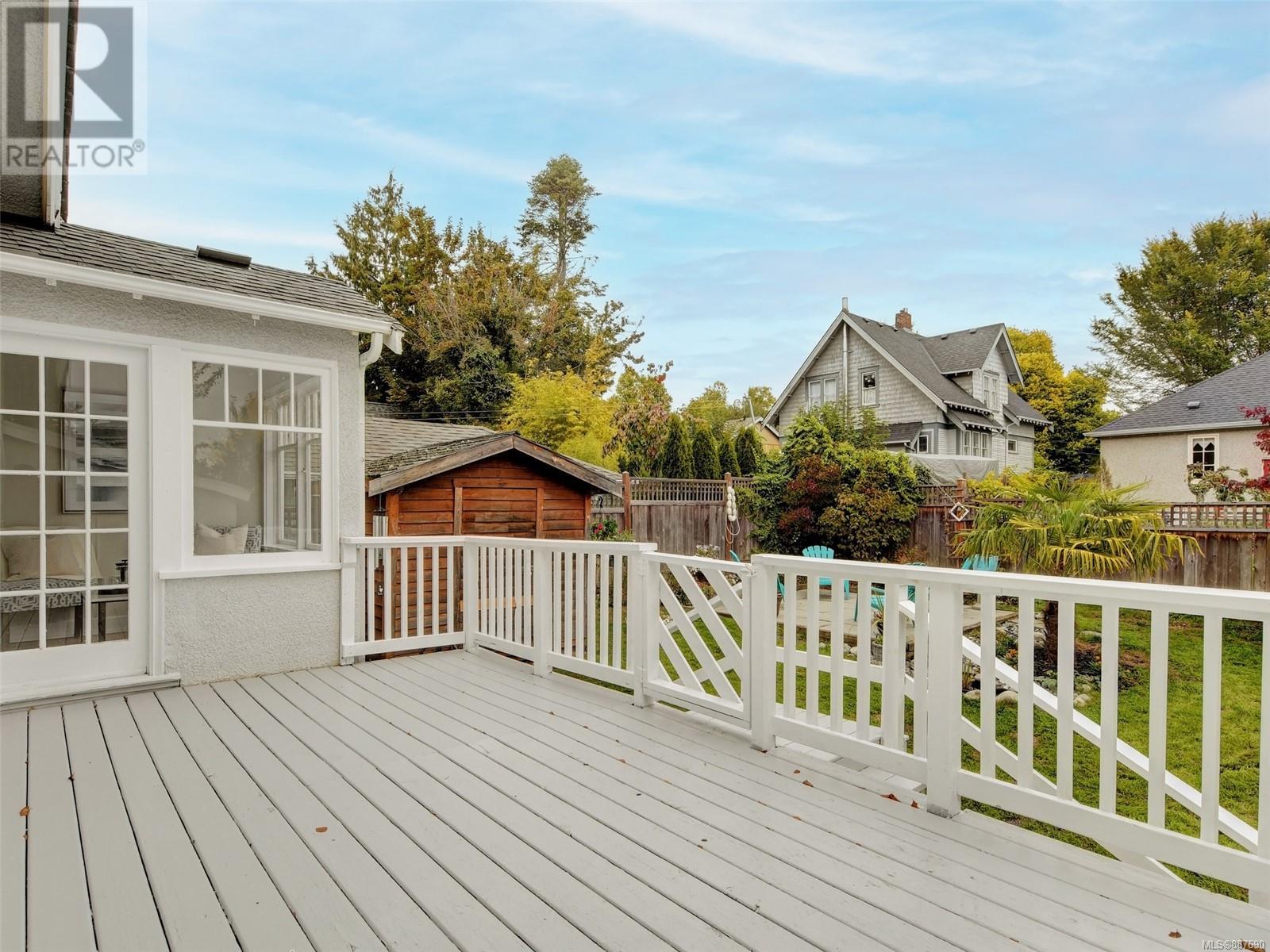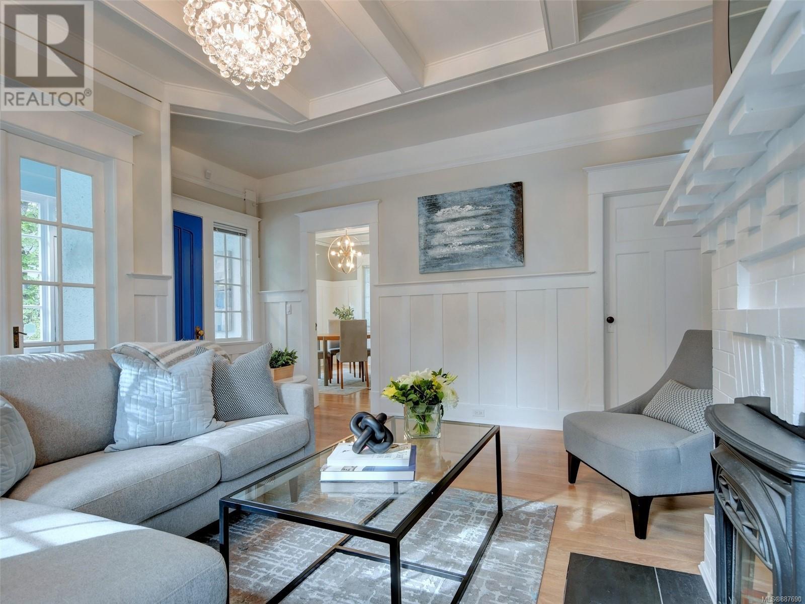 Location! Location! Location! Smell the sea air from this delightful home in the popular East Fairfield/Gonzales neighbourhood located just steps to the ocean with views of Ross Bay from the porch & dining room. This charming 2 or 3 bedroom home offers a tasteful blend of yesterday and today and is move in ready! From the welcoming front porch to the wainscoting and coffered ceilings in the living & dining room you are reminded of a bygone era; the gas & electric fireplaces, newer windows, gas furnace and modern updated kitchen set you definitely in the today. Set on a private lot with great outdoor space for entertaining on your patio or deck. Enjoy the mature fruit trees laden with fruit. It is hard to beat this location on a quiet tree lined street that leads to the waterfront; just a stroll to the popular beach at Gonzales Bay, steps to schools and shopping and with easy access to downtown and U Vic. A must see home! (id:22211)