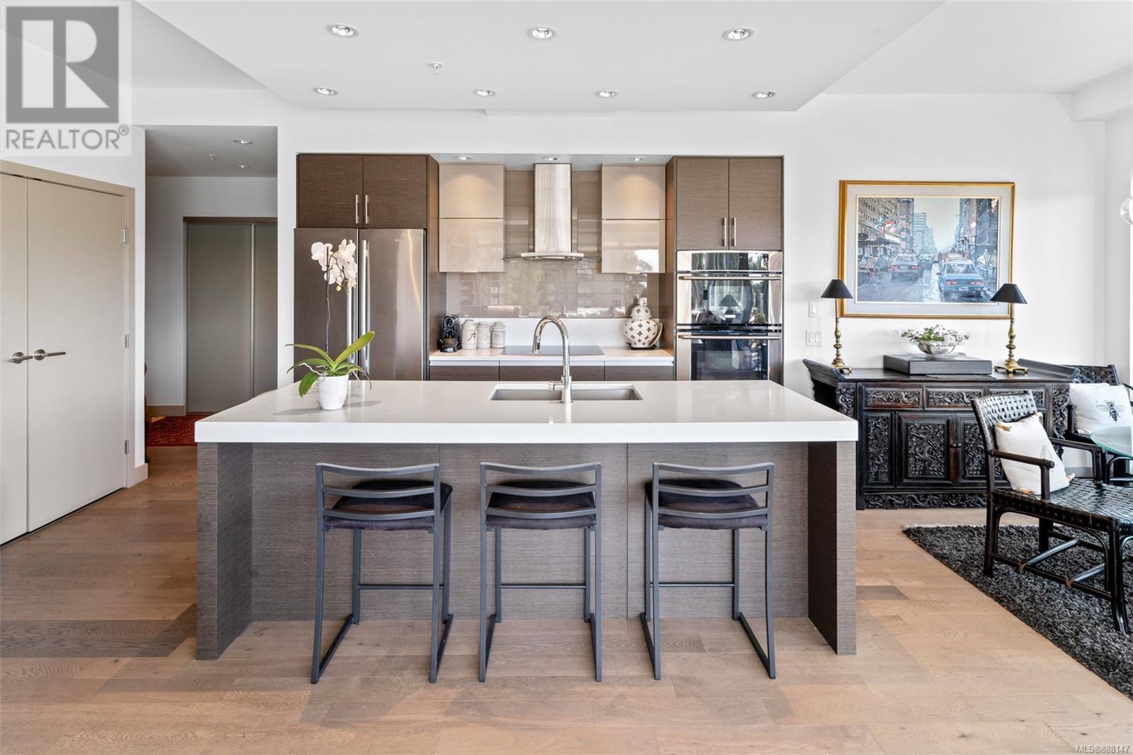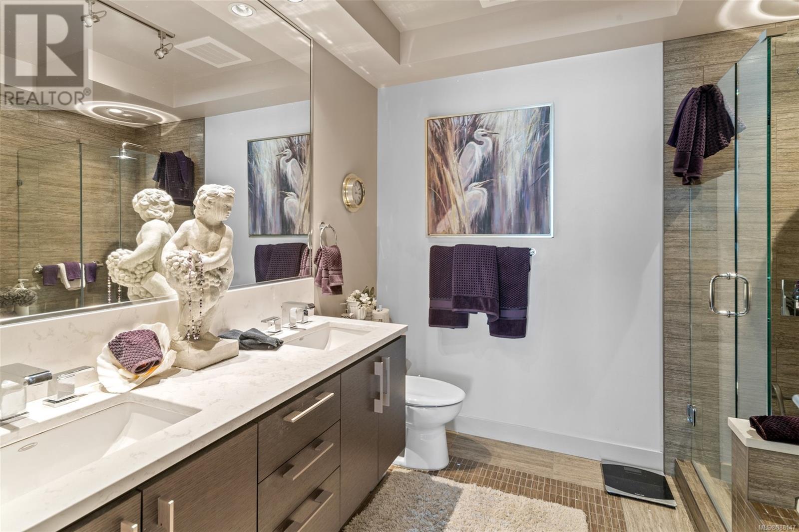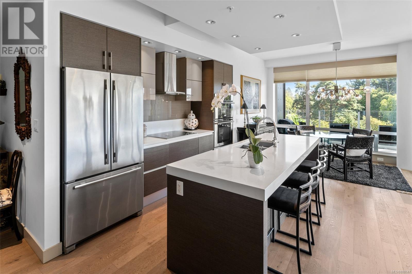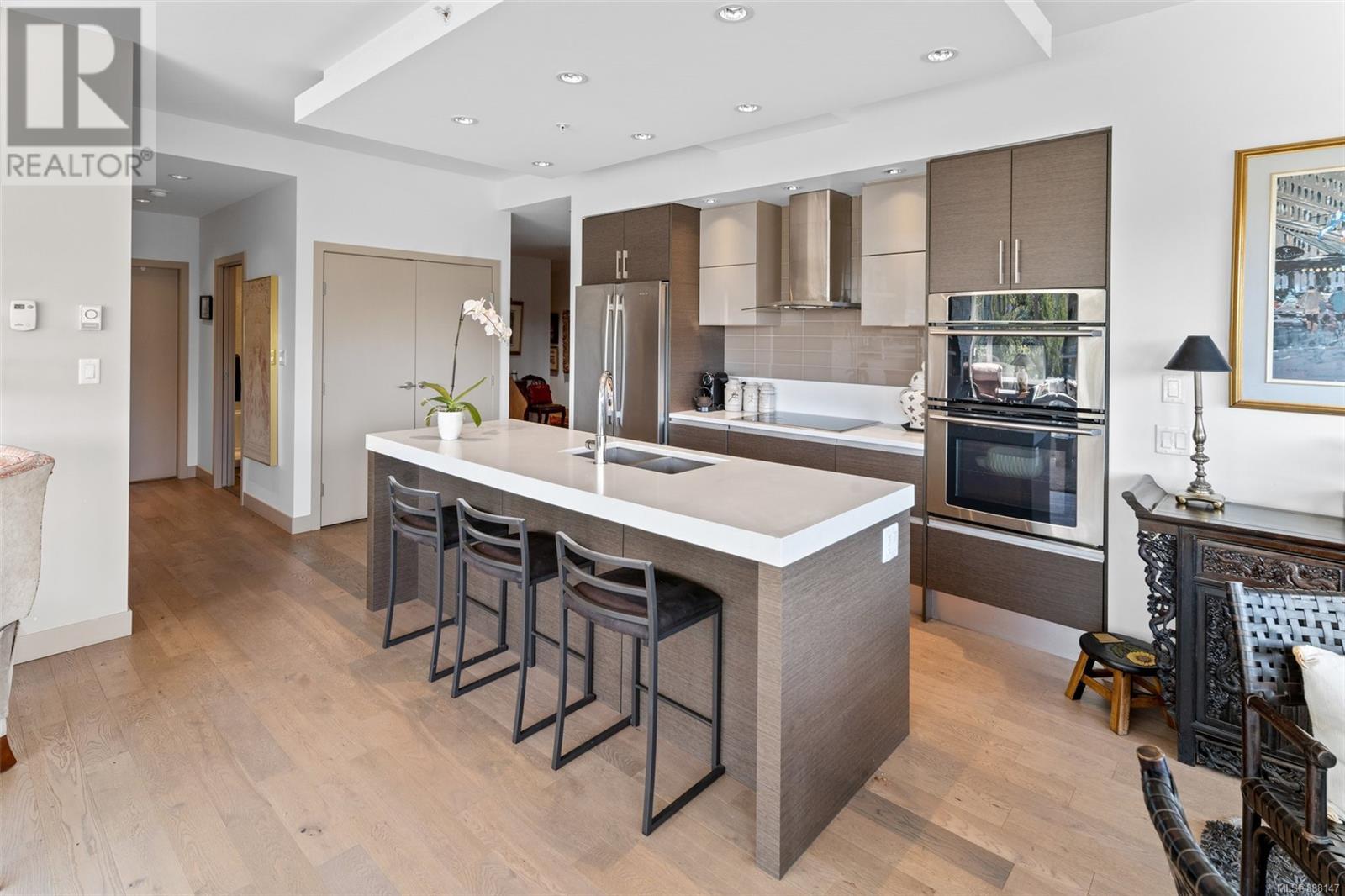 ''Douglas On The Park '' A collection of 38 luxury residences in a reinforced steel and concrete building. Enjoy a short walk to James Bay, easy walk downtown, and steps to the ocean. You will be mesmerized by the unobstructed view of Beacon Hill Park across the street and distant ocean views. Enjoy an entertainment-sized deck with a setback to sit and enjoy the ongoing activities of the park in absolute privacy. This thoughtfully designed open concept floor plan features 2beds/2baths, plus a den, large well-equipped kitchen. Features include luxury bathrooms, heated bathroom floors, large kitchen with premier appliances, island eating, hardwood floors, custom cabinetry, floor to 9ft. windows, beautiful cabinetry with ample storage, quartz countertops. Other features include a fireplace, electric blinds, closet organizers, laundry area, storage lockers, parking stall, and bike storage. Own this Beautiful Sub Penthouse today that truly reflects the life you want to live. (id:22211)