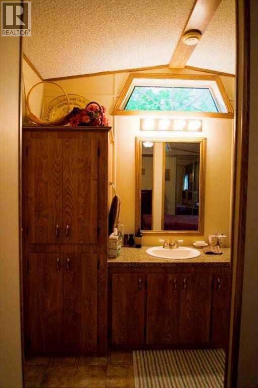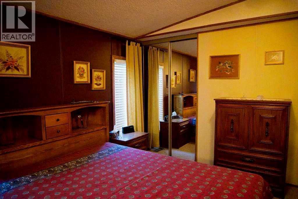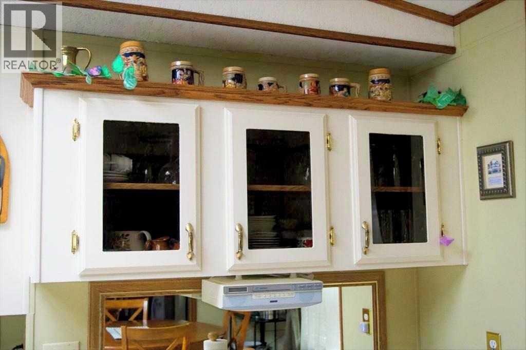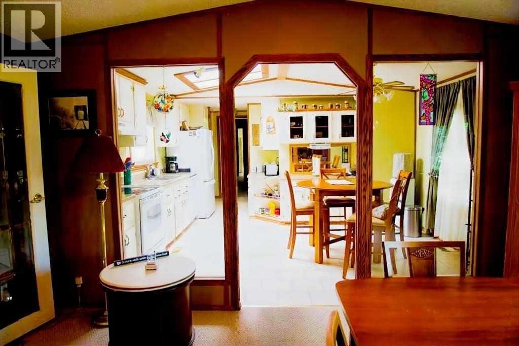 Welcome to 50+ living in this adult community designed with seniors in mind. This single wide mobile home with a generous addition creates a unique floor plan boasting a lovely living/ TV room overlooking the deck, a 4th bedroom (currently used as an office), and a generous foyer complete with large coat closet and ample seating to conveniently change footwear. The irregular shape of this front entry accommodates space to welcome several guests at one time. The original living room is now a semi-formal dining room, featuring a west facing large window, carpet flooring, and French doors to the adjacent living room. Glass partition walls either side of the entrance to the bright eat-in kitchen creates an open flow while delineating the space for furniture placement. The kitchen workspace is flooded with natural light from the skylight and window overlooking the deck. Other features include ample cupboard space , a built in China cabinet, and pantry with slide out shelving for convenience. Down the hall a step or two is the laundry/storage/mechanical room opposite the back door which accesses the generous deck. Here is an outdoor space for B-B-Q, summer suppers in a private space sheltered from northerly and westerly breezes, overlooking the fenced back yard. Back inside the entire south end of the home is the primary bedroom featuring a 3 piece ensuite. The walk-in shower there was created by "Bath Fitter" in 2020 replacing the original tub. Two good sized closets with mirrored doors complete this lovely retreat . At the north end of the home you will find 2 more bedrooms, a 4 piece bath with tub, large linen closet and a smaller utility closet for vacuum etc. This very well thought out floor plan clicks all the boxes for many couples. (id:61201)
